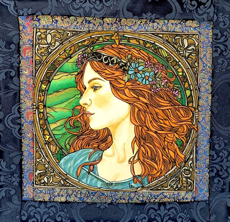 Isolde is the heroine of the medieval Celtic legend of Tristan and Isolde. Her image conveys tenderness, sensitivity, and romance. The floral crown and soft background evoke timeless love and dreamy melancholy.